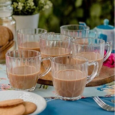 Femora Glass Vintage Tea Mug Coffee Mug - Set of 6- 190 ML FMTCJPU06