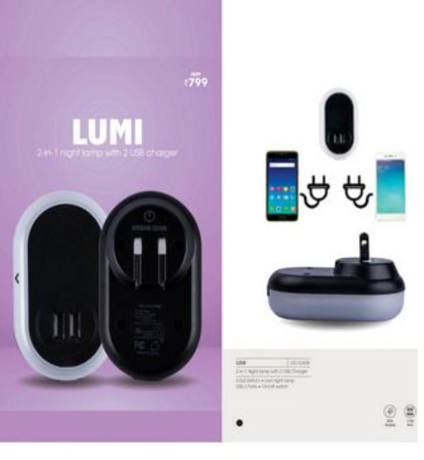 2-in-1 Night light with 2 USB Charger