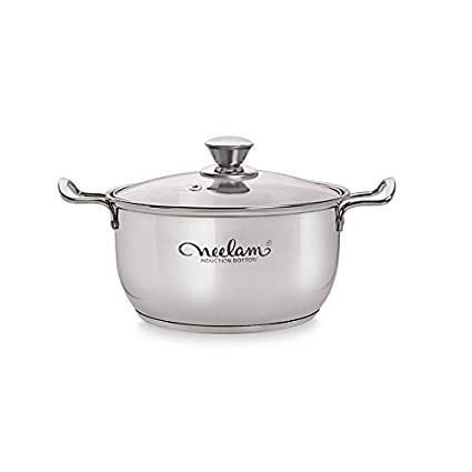 Steel Finish, Belly Sauce Pot 20 cm with Glass Lid. Mainly used for Cook & Serve. Capacity - 3000 ML.