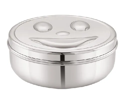 Stainless Steel Smiley Puri Dabba with Box Packed. New Attrative Look. Capacity Apprx- 600 ML