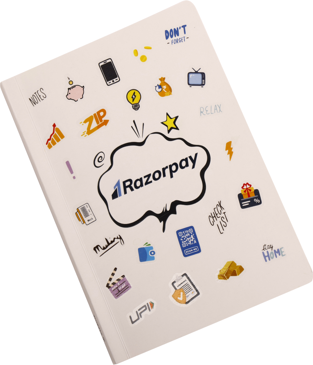 Die cut stickers at back with raised UV, 350 GSM cover