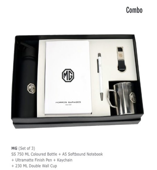 SS 750 ML Coloured Bottle + A5 Softbound Notebook + Ultramatte Finish Pen + keychain + 230 ML Double wall cup