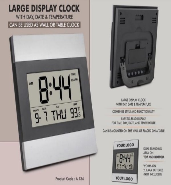 Large display clock with Day, Date & Temperature | Can be used as wall or table clock