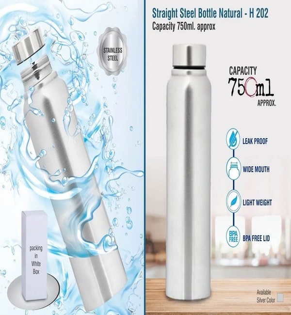 Straight steel bottle Natural | Capacity 750ml approx