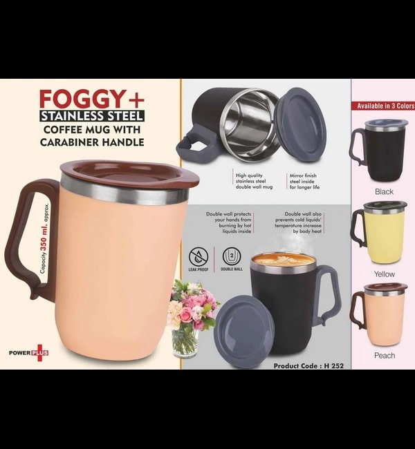 Foggy+ Stainless Steel coffee mug with Carabiner Handle | Leak Proof Cap | Capacity 350ml approx