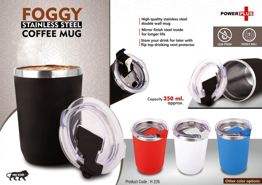 Foggy: Stainless Steel coffee mug | Premium clear cap with flip top lid | Leak Proof | Capacity 350ml approx