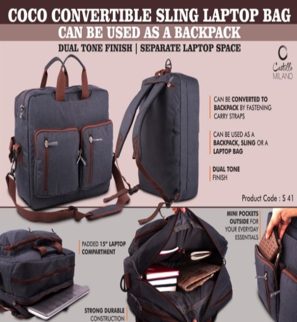 Coco Convertible Sling Laptop Bag | Can be used as a backpack | Dual tone finish | Separate laptop space