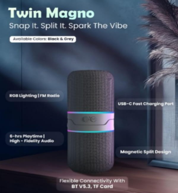 Introducing TWIN MAGNO,16-Watt Magnetic Wireless Speaker with Multiple Connectivity