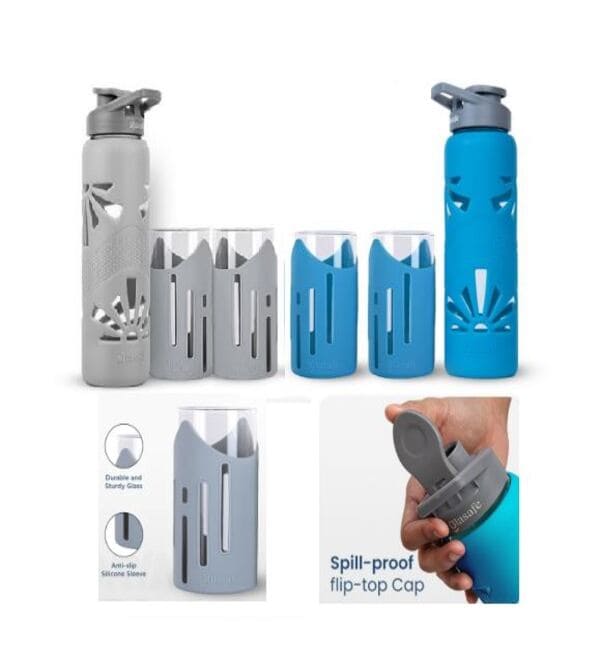 Glass Bottle 750ml X 2 Drinking Glass 350ml X 4